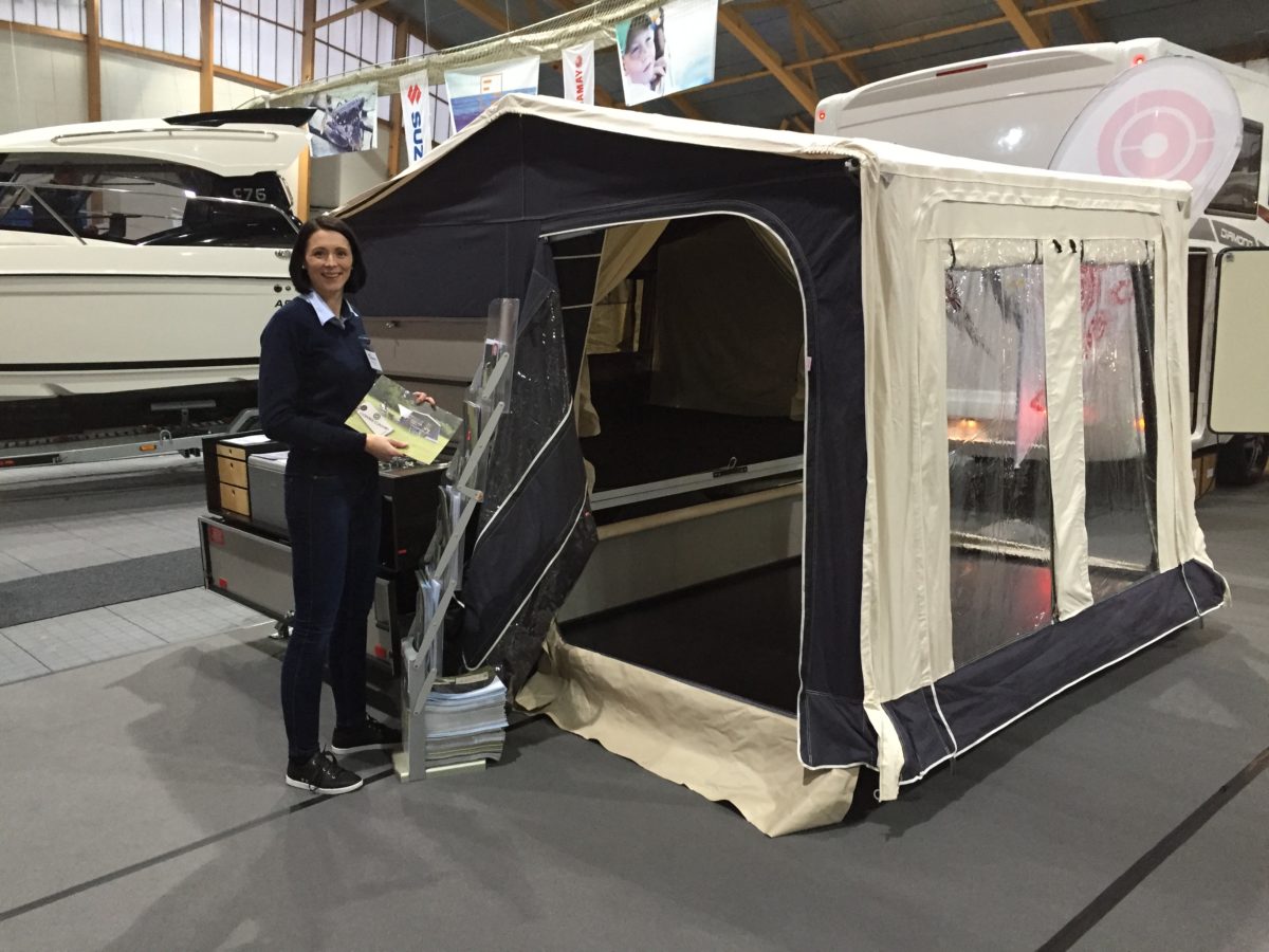 – En Combi-Camp tar ett minutt å slå opp, og så er den klar til overnatting, og det tar like kort tid å slå den sammen, forteller Tanja Løviknes, fra Løviknes Caravan.